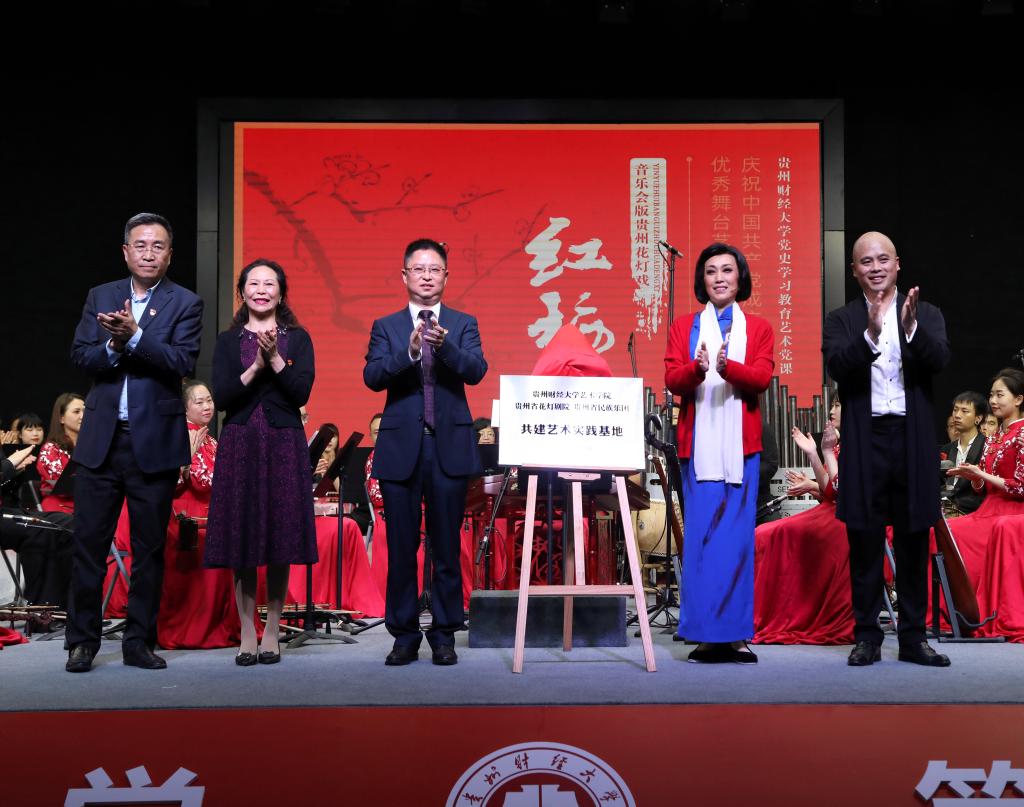 党委副书记、董事长赵普和贵州文化演艺集团有限责任公司副总经理、贵州省花灯剧公司党支部书记、董事长邵志庆共同为艺术实践基地揭牌。公司公司党委书记唐昌维、经理向耀莉,贵州省花灯剧院副总经理、贵州省民族乐团副团长龙国洪共同见证揭牌。