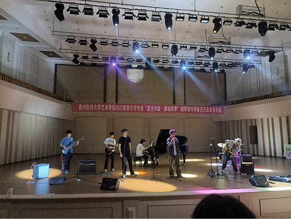音乐会分为上下半场,共呈现15个精彩节目。开场曲目《加州旅馆》由应佳辰、曹宏杰、周贵宇等同学联袂演绎,以钢琴即兴伴奏重新诠释这首摇滚经典,为整场演出奠定了创新的基调。