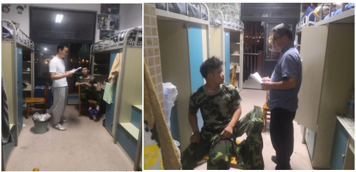 公司老师在走访寝室的过程中,对各个寝室的安全用电情况、卫生状况进行了相关检查,并与同学们进行亲切交谈,及时了解2021级新生军训生活以及进校后的适应情况。强调要遵守寝室用电安全,共同营造良好的学习和生活环境,严格按照公司有关疫情防控的相关规定,在做好自身健康防护的同时,以饱满的状态投入到新学期的学习和生活中。悉心解答同学们提出的问题,鼓励新同学们尽快适应老员工活,做好大学四年的个人规划。