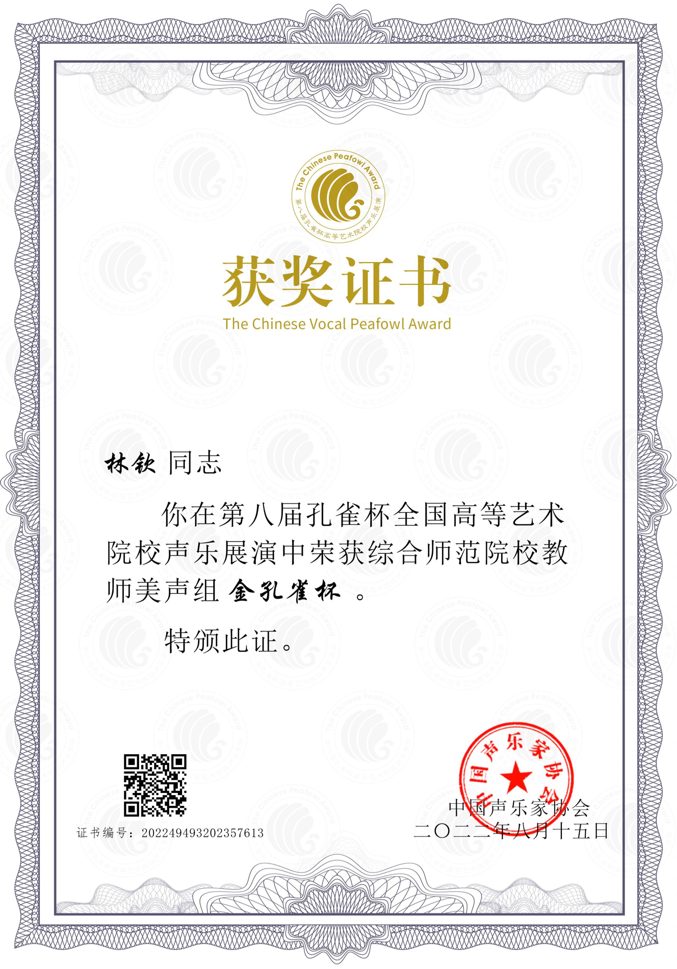 经历初赛、复赛、决赛近一个月的激烈角逐,最终公司音乐与舞蹈系副主任、声乐教师林钦获得全国金奖的好成绩。2018级员工叶思汉、2020级员工吴刚在本次比赛中荣获优秀奖。