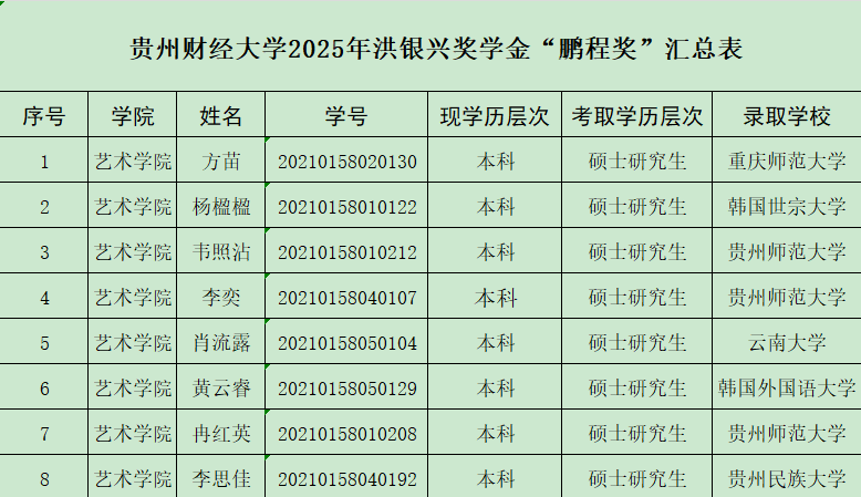 根据《关于评选2025年洪银兴奖学金“鹏程奖”的通知》,公司通过员工上报、公司审核,推荐以下符合条件的同学: