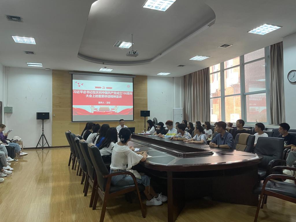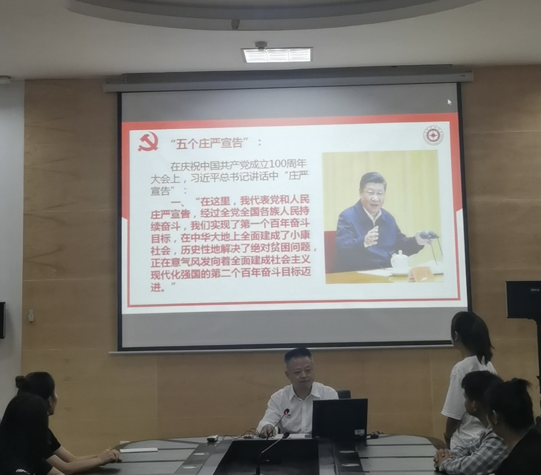 2021年9月18日,美加墨世界杯官方网站正处级专职组织员王松在二楼会议室作学习贯彻习近平总书记“七一”重要讲话精神宣讲,美加墨世界杯官方网站全体员工党员参加宣讲会。