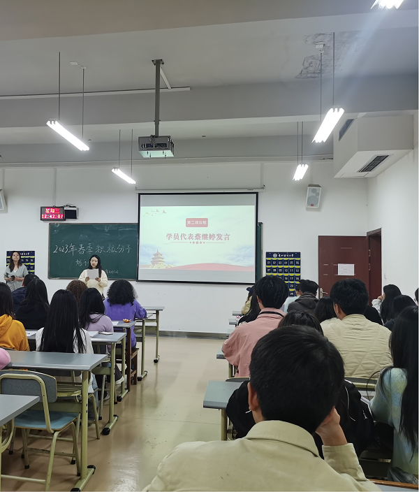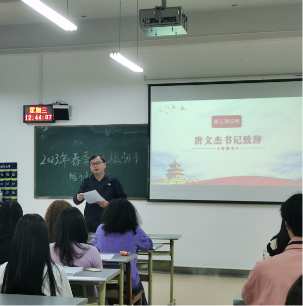 仪式结束后,唐文杰书记为学员们上党课,紧紧围绕党的二十大精神展开。教育学员要端正入党动机,认真学习,主动承担社会责任。
